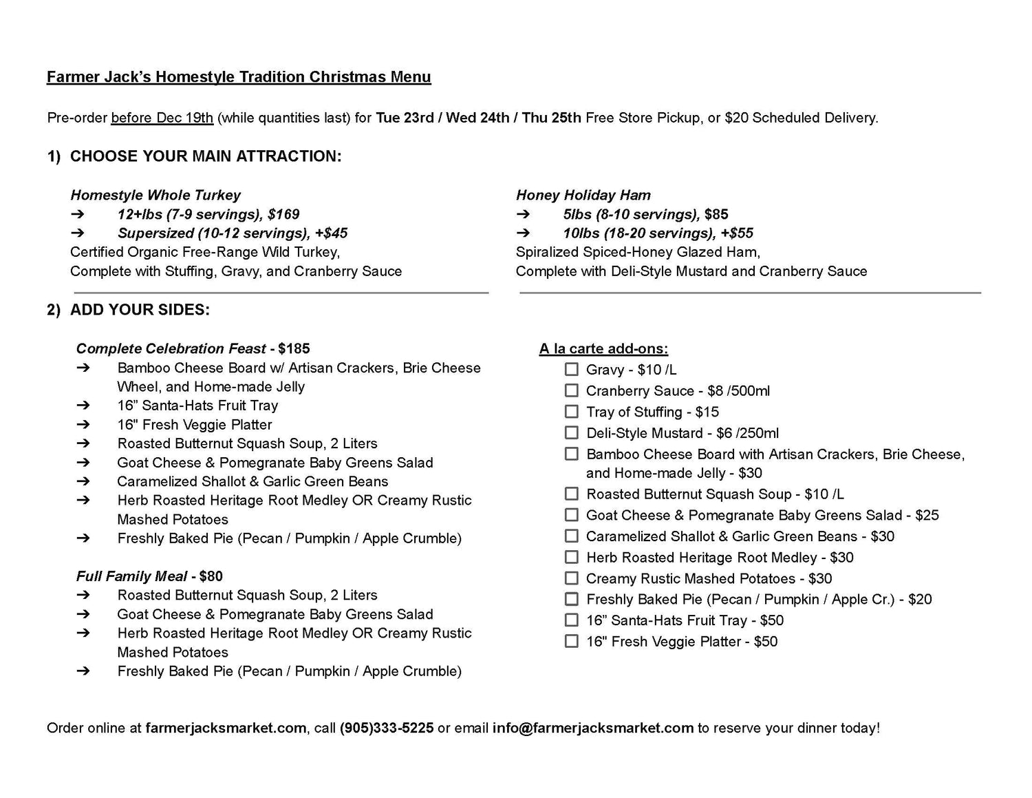 A la Carte add-ons