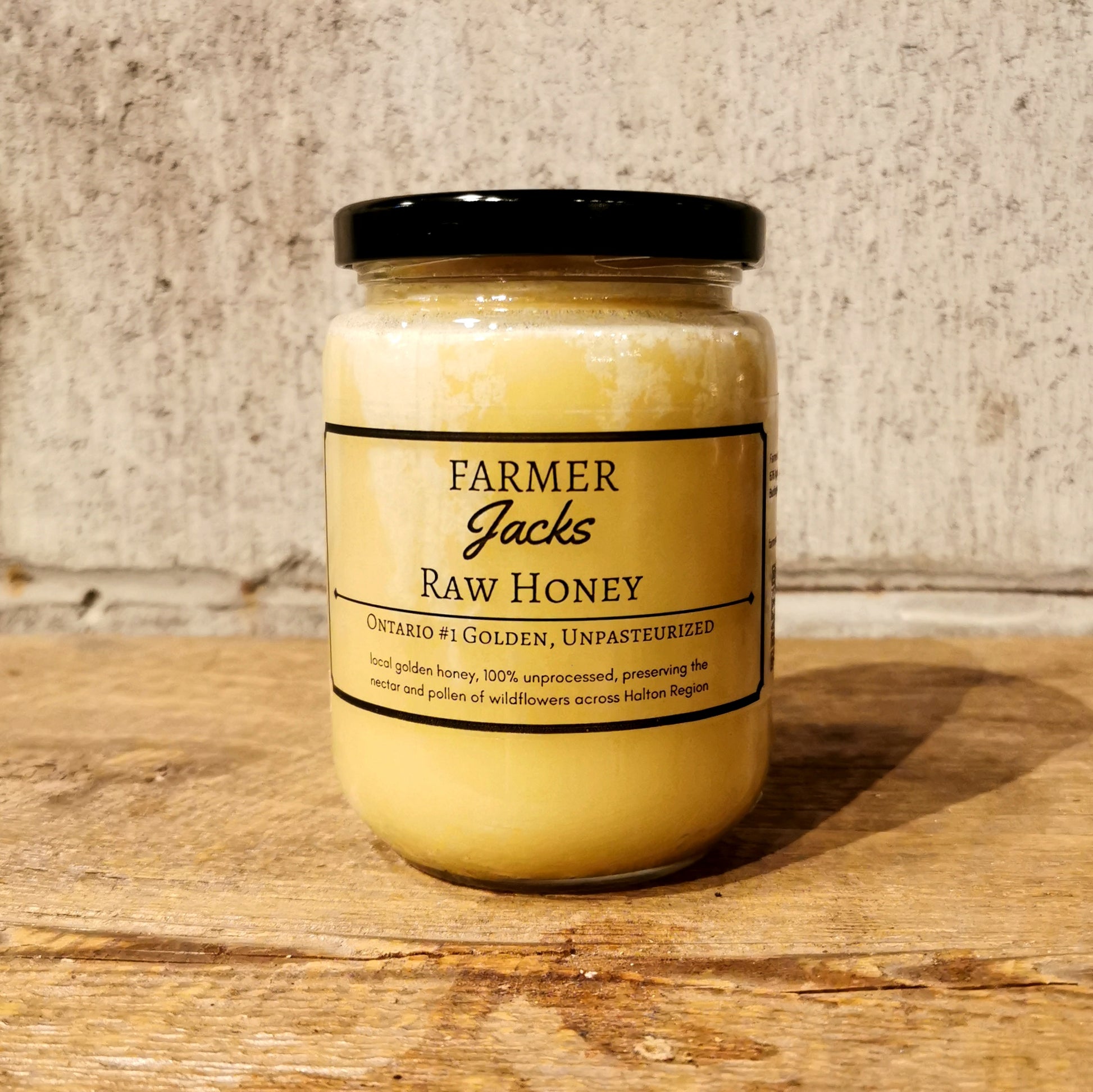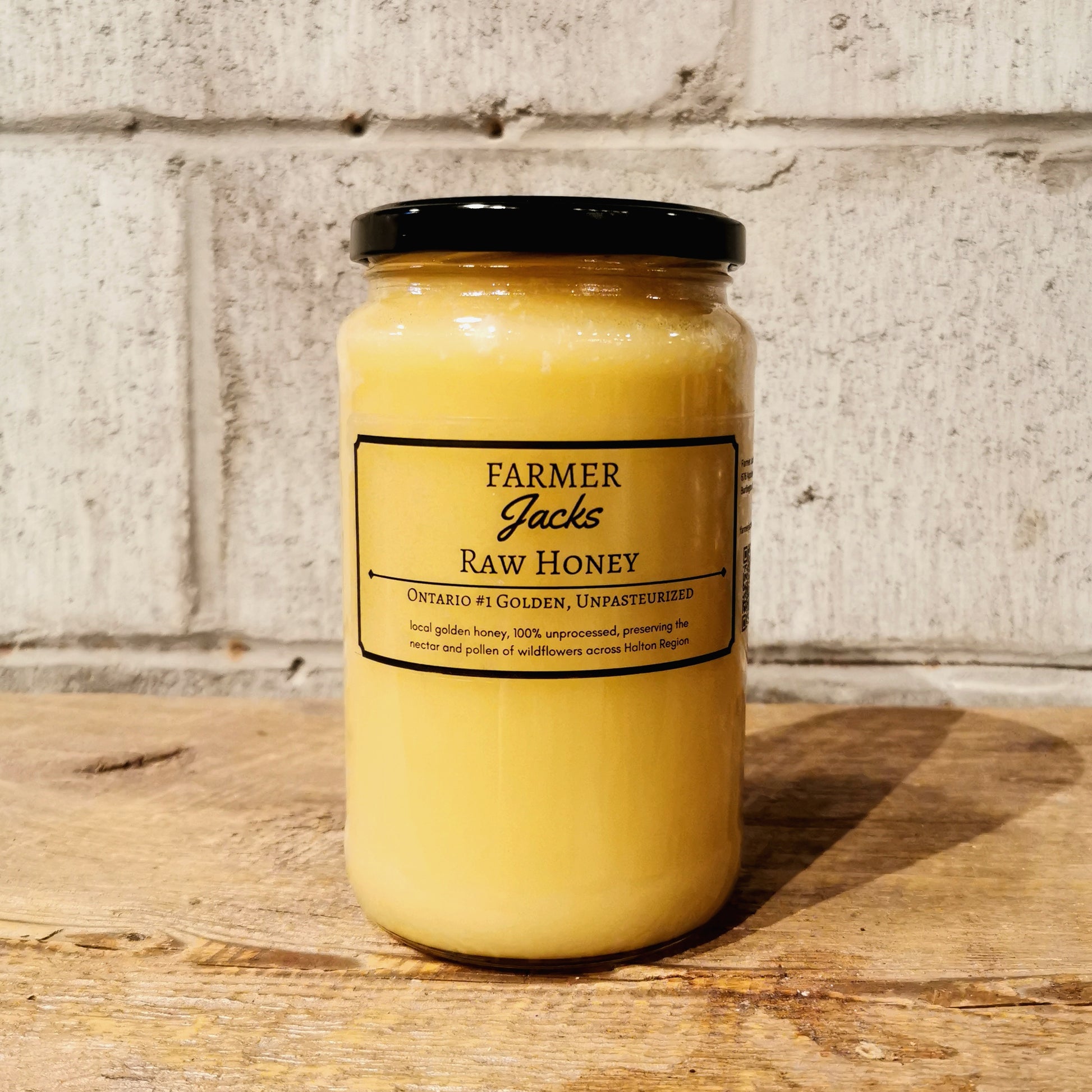 Local, raw golden honey, 100% unprocessed and preserving the nectar and pollen of a variety of wildflowers across Halton Region. Unlike processed or pasteurized honey, raw honey is not heated or filtered, meaning that it retains all of the natural nutrients and health benefits that make honey so special. Honey is packed with antioxidants, enzymes, and minerals that can help support a healthy immune system, aid in digestion, and even promote healthy skin.