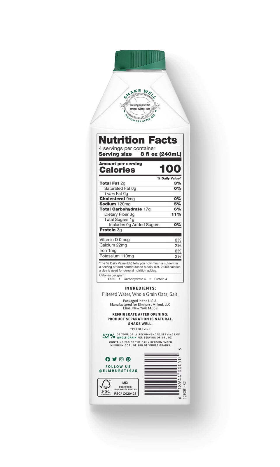 INGREDIENTS: Filtered Water, Whole Grain Oats, Salt